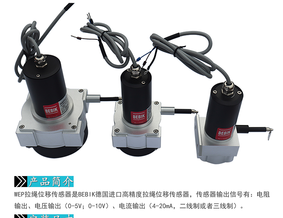Milont WEP cable displacement sensor is BEBIK Germany imported high-precision cable displacement sensor, the output signal of the sensor include: resistance output, voltage output (0-5V;0-10V), current output (4-20mA, two-wire or three-wire system).