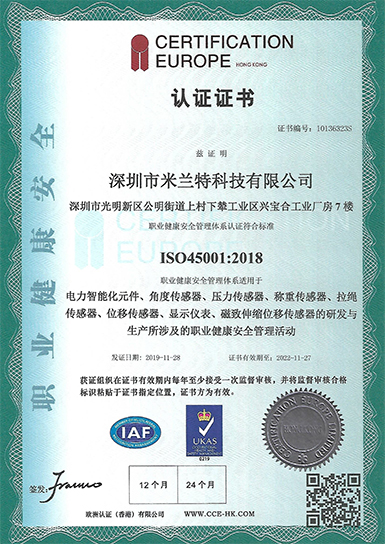 米蘭特ISO職業(yè)健康安全管理體系認(rèn)證證書